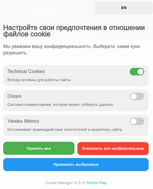 Я — веб-разработчик SerGio Play, создающий современные решения для сайтов с акцентом на безопасность данных, приватность пользователей и соответствие стандартам GDPR, CCPA, LGPD. Мой Cookie Manager позволяет управлять cookies, интегрировать скрипты асинхронно и повышать доверие посетителей.